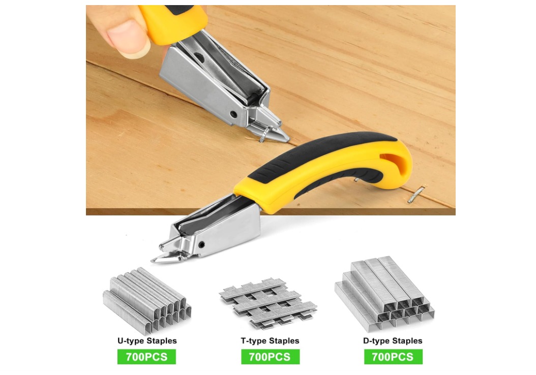 The Aeccn staple gun 3-in-1 Heavy Duty Kit provides a convenient and comprehensive solution for all your fastening needs, offering compatibility with D-type, U-type, and T-type staples, plus a remover and user-friendly features in a single package.