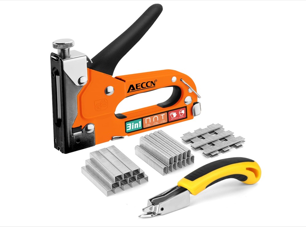 Our Aeccn staple gun 3-in-1 Heavy Duty Kit is an all-in-one solution that simplifies upholstery, carpentry, and home decoration, requiring no additional expertise and providing a powerful, jam-free experience.